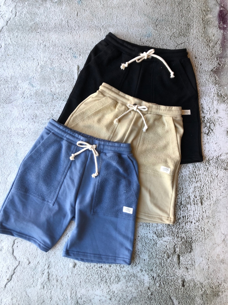 Bermuda rustica de algodon. Cuenta con cordon para ajustar en la parte de la cintura. Disponible en celeste, negro o beige.